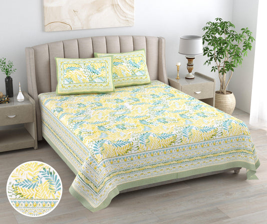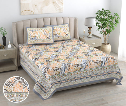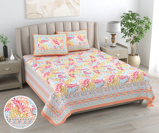 Mahanadi 310 TC Cotton Bed Sheet with 2 Pillow Covers - Printed
