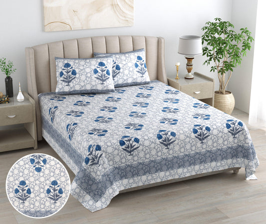 Mahanadi 310 TC Cotton Bed Sheet with 2 Pillow Covers - Printed