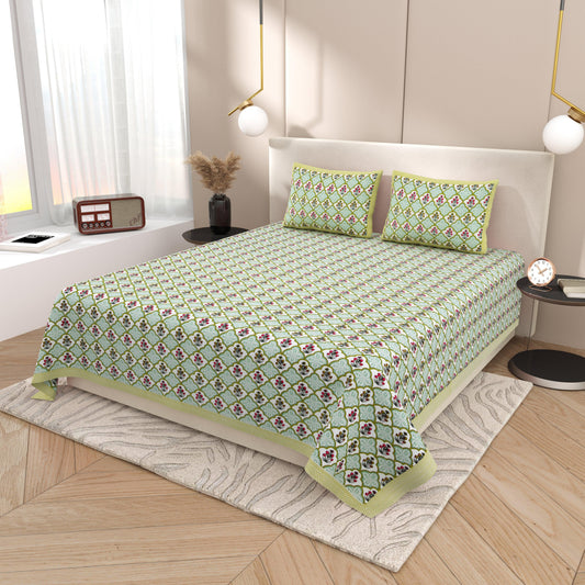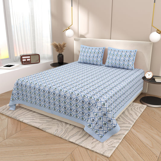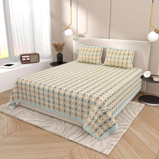 Mahanadi 310 TC Cotton Bed Sheet with 2 Pillow Covers - Printed